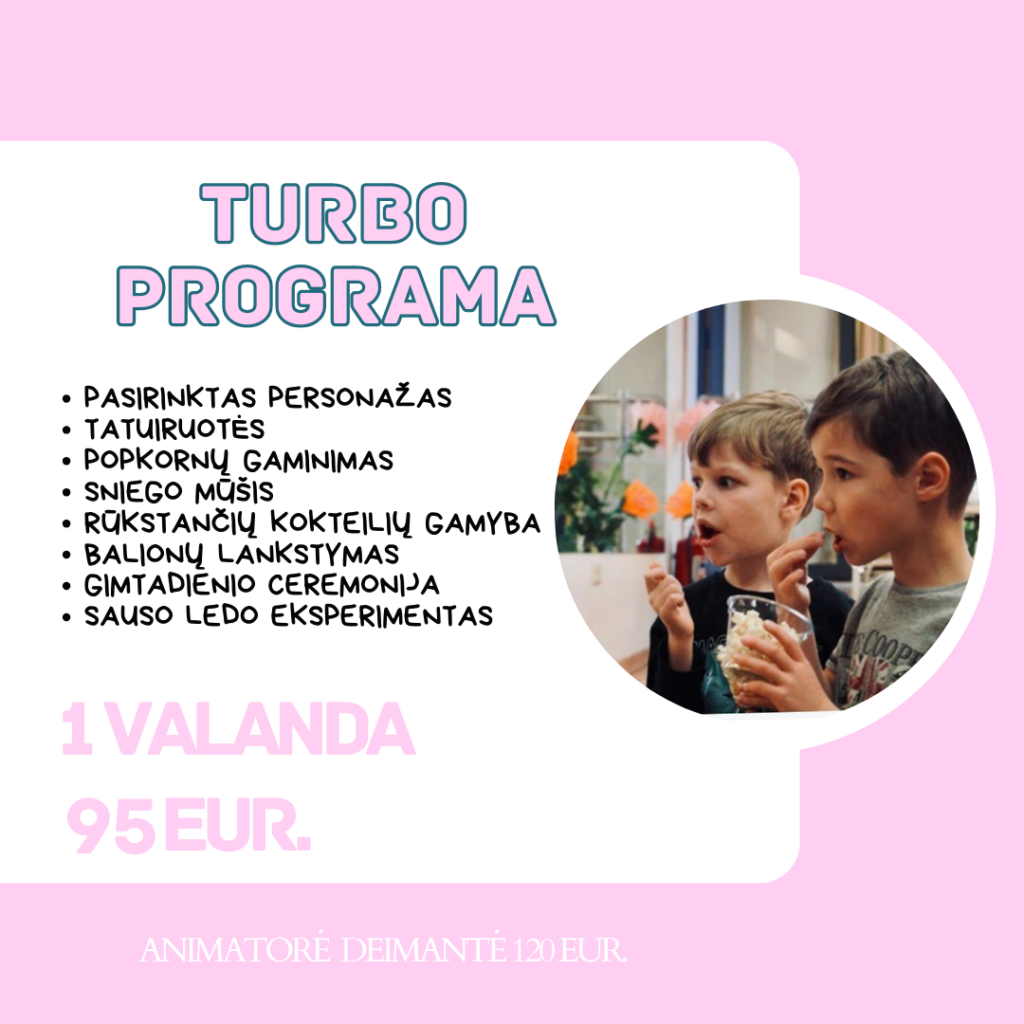 Mūsų siūlomos, įtraukiančios programos tinka įvairioms progoms ir šventėms. Susipažinkite su mūsų programų asortimentu ir išsirinkite tinkamiausią jūsų šventei. Jei tokios neradote, maloniai laukiame jūsų žinutės.